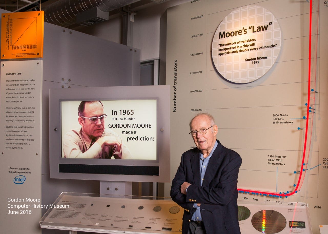 这种由集中采购带来的成本急剧下降(从数千美元到不足两美元),不仅为芯片的广泛应用铺平了道路,也催生了 Moore 的观察——即后来的摩尔定律。摩尔定律不仅仅是对趋势的总结,它更像一个“协调机制”和“自我实现的预言”: